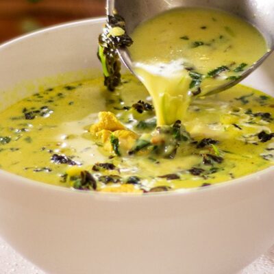 ServeLadle the creamy chicken soup into bowls, garnish with fresh parsley, and serve hot. |